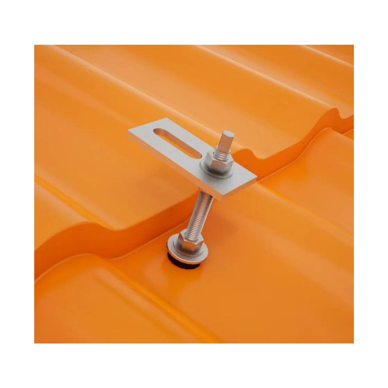 EPDM-Pads, die mit M10-Muttern festgezogen werden, gewährleisten die Abdichtung der Dachfläche. .